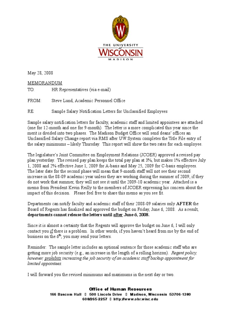 Sample Salary Notification Letter For Unclassified Employees 2006